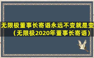 无限极(Infinitus)是一家总部位于中国广州的直销公司,隶属于香港李锦记集团。无限极主要从事中草药健康产品的研发、生产和销售。关于“无限极董事长寄语永远不变就是变”的说法,这可能是一种强调企业适应市场变化、不断创新和改进的理念。