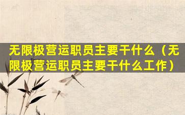 营运职员的工作内容会根据公司的具体需求和职位的不同而有所差异。如果您对无限极营运职员的职责有更具体的问题,建议直接咨询无限极公司或查看其官方发布的职位描述。