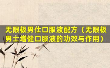 无限极男仕口服液是一种针对男性健康的产品,它通常包含多种中草药成分,旨在帮助男性增强体质、提高免疫力、改善疲劳等。具体的配方和成分比例是企业的商业机密,通常不会对外公开。