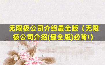 请注意,以上信息是基于2021年的情况,具体的公司介绍和业务发展可能会有所变化。如需获取最新的公司信息,建议直接访问无限极的官方网站或联系公司获取最新资料。