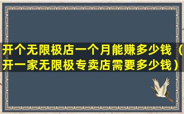 无限极是一家中国的直销公司,主要销售健康食品、个人护理品和家居用品等。关于开一个无限极店一个月能赚多少钱,这个问题的答案取决于多种因素,包括但不限于: