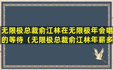 无限极是一家中国的健康产品公司,其总裁俞江林在公司的年会或其他活动中可能会进行表演或演讲。如果您提到的“等待”是指某首歌曲,那么这可能是俞江林在年会上演唱的一首歌。不过,由于我无法访问最新的数据,我无法提供具体的细节或视频内容。