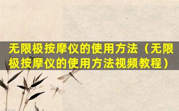 如果您需要的是无限极按摩仪的特定使用方法视频教程,建议您在无限极官方网站、官方社交媒体平台或官方授权的电商平台查找相关资源。您也可以在视频分享平台如YouTube或Vimeo上搜索相关教程,但请确保来源的可靠性,以避免获取错误或不安全的使用信息。