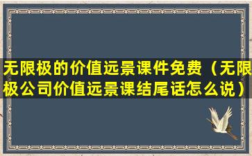 请注意,这只是一个示例,实际的结尾话可能会根据具体的课程内容和公司的最新信息有所不同。如果您需要无限极公司价值远景课程的具体结尾话,建议直接联系无限极公司获取最准确的信息。