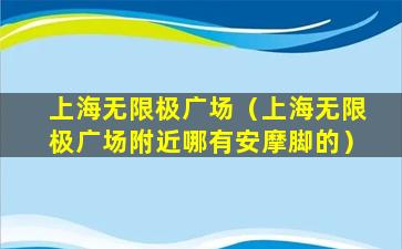 上海无限极广场位于上海市浦东新区,附近有许多提供按摩服务的店铺。如果您想要找按摩脚的地方,可以考虑以下几种方式: