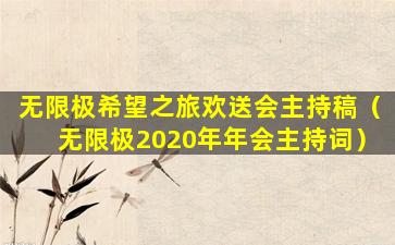 很抱歉,我无法提供“无限极2020年年会主持词”的具体内容,因为这可能涉及到公司的内部资料和版权问题。如果您是无限极公司的员工或相关人员,建议您联系公司内部相关部门获取正式的年会主持词。