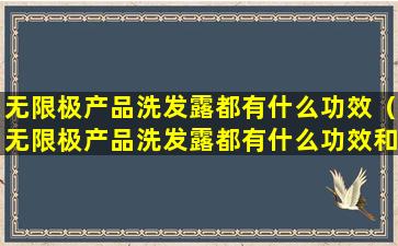 无限极(Infinitus)是一家中国的健康产品公司,其产品线涵盖了个人护理、保健食品等多个领域。关于无限极的洗发露,具体的功效会根据产品的不同配方而有所差异。一般来说,洗发露的主要功效包括: