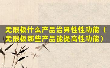 无限极(Infinitus)是一家中国的健康产品公司,主要生产和销售中草药健康产品。关于您提到的“治性功能的产品”,无限极的产品线主要集中在提高整体健康和免疫力,改善生活质量等方面。