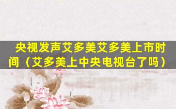 截至我的知识更新日期(2023年),艾多美(AIMI)是一家中国的化妆品公司,但它并没有在中国的主要股票交易所上市。如果央视或其他媒体提到了艾多美的上市时间,那可能是指该公司在某个特定时间点宣布了上市计划或者在某个海外市场上市。
