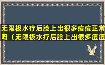 无限极是一家中国的健康产品公司,提供多种健康和美容产品,包括水疗服务。如果你在使用无限极的水疗服务后脸上出现了很多痘痘,这可能不是正常现象,因为水疗通常旨在促进皮肤健康和清洁。