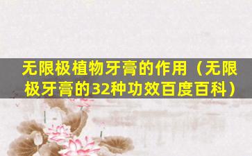 关于无限极牙膏的32种功效,目前没有确切的信息表明无限极牙膏具有如此多的功效。通常,牙膏的主要功能是清洁牙齿、预防蛀牙、减少牙菌斑和牙石的形成,以及提供口气清新等。