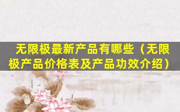 截至我所知的信息截止日期(2023年),无限极的最新产品可能包括但不限于以下几类: