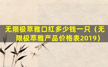 无限极(Infinitus)是一家中国的健康产品公司,其产品线包括护肤品、个人护理品等。萃雅(Cuirass)是无限极旗下的一个护肤品牌,但关于萃雅口红的价格,由于产品线可能会有更新,价格也会随之变动,因此无法提供一个确切的数字。