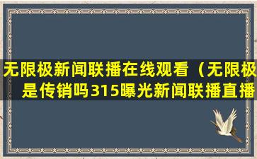 至于“315曝光新闻联播直播无限极”,这可能是指在中国的消费者权益保护日(3月15日)期间,新闻媒体可能会对一些企业的违规行为进行曝光。如果无限极有违规行为被媒体曝光,那么这将是基于具体事件的报道。我无法提供实时的新闻更新或事件回顾,因此建议您查阅最新的新闻报道或官方声明以获取准确信息。