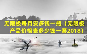 无限极是中国的一家直销公司,主要销售健康食品、个人护理品等产品。关于“每月安多钱一瓶”的问题,这可能指的是无限极的某款产品,但由于信息不完整,无法确定具体是哪一款产品。