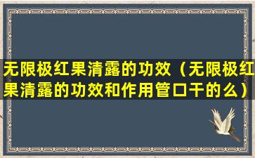 无限极红果清露是一种以山楂、金银花、蜂蜜等为主要成分的饮品,它通常被宣传为具有清热解毒、润肠通便、调节血脂等功效。关于“管口干的么”这一表述,可能存在误解或不明确的地方。