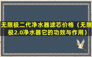 无限极(Infinitus)是一家中国的健康产品公司,提供包括净水器在内的多种健康产品。关于无限极二代净水器滤芯的价格,由于产品价格可能会随时间、地区、促销活动等因素变化,因此最准确的信息应该直接咨询无限极的官方渠道或者授权经销商。