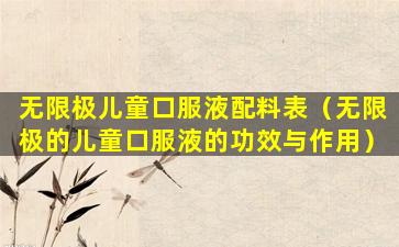 如果您需要了解无限极儿童口服液的具体配料信息,建议直接查看产品包装上的标签,或者联系无限极公司的官方客服获取最准确的信息。同时,购买和使用任何保健品之前,最好咨询专业的医疗人员,确保产品适合儿童使用,并且不会与儿童正在使用的其他药物产生不良反应。
