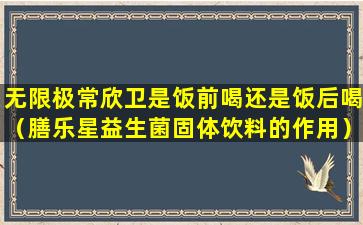无限极常欣卫是一种保健品,其服用时间通常建议在饭前或饭后都可以,但最好根据产品说明书或医生的建议来确定。一般来说,如果产品说明书中有特别指出服用时间,应严格按照说明进行。如果没有特别说明,可以根据个人的生活习惯和身体反应来选择最合适的时间。