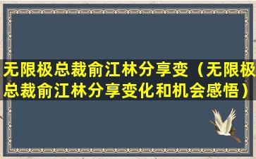 截至我所知的信息截止日期(2023年),无限极是一家总部位于中国的直销公司,主要从事健康产品的销售。无限极的总裁俞江林在公司的管理和战略发展中扮演着重要角色。关于俞江林的具体分享内容,我无法提供最新的信息,因为我的知识库中没有包含这方面的实时数据。