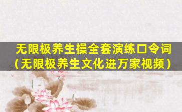 无限极养生操是一种结合了中国传统养生理念和现代健身方法的体操,旨在通过一系列的动作来调和气血、强身健体。以下是一个可能的无限极养生操全套演练的口令词示例,供您参考: