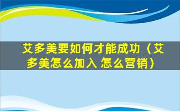 艾多美(Amway)是一家全球性的直销公司,主要销售健康、美容和个人护理产品。要在艾多美取得成功,可以遵循以下几个步骤: