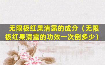 无限极红果清露是无限极公司生产的一款产品,主要成分包括山楂、金银花、蜂蜜等。这款产品通常被宣传为具有清热解毒、润肠通便的功效。具体的产品成分可能会随着生产批次和配方的调整而有所变化,因此最准确的信息应该参考产品包装上的成分列表或官方提供的产品说明。