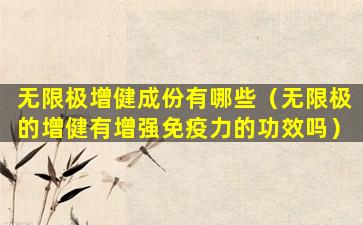 无限极增健是一款由无限极(Infinitus)公司生产的保健品,主要成分包括多种植物提取物,旨在帮助调节身体机能,增强免疫力。具体的成分可能会随着产品配方的更新而有所变化,但通常包括以下几类: