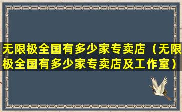 无限极(Infinitus)是一家中国的直销公司,隶属于香港李锦记集团,主要销售健康产品。截至我的知识更新日期(2023年),无限极在中国拥有大量的专卖店和服务中心,但具体的数量可能会随着时间和公司策略的调整而变化。