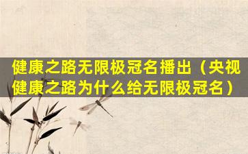 这句话看起来像是一个广告语,通常用于电视节目或网络视频的赞助商宣传。"健康之路"可能是一个节目或系列内容的名称,而"无限极"则是一个公司的品牌名,它可能是一家专注于健康、营养或个人护理产品的公司。"独家冠名播出"意味着无限极是该节目的主要赞助商,并且其品牌将在节目播出期间得到特别强调。