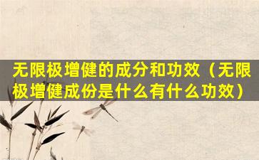 无限极增健是无限极公司生产的一款保健品,其主要成份包括多种植物提取物,如灵芝、黄芪、枸杞、人参等,以及一些维生素和矿物质。这些成份在传统中医理论中被认为具有增强免疫力、调节身体机能、抗疲劳等功效。