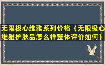 无限极心维雅系列价格(无限极心维雅护肤品怎么样整体评价如何)