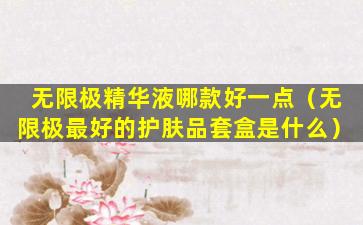 无限极(Infinitus)是一家中国的健康产品公司,提供多种保健食品和护肤品。关于无限极的精华液,由于产品线可能会有更新和变化,具体哪款好需要根据您的肤质、护肤需求以及产品的成分和功效来决定。