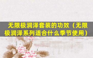 无限极(Infinitus)是中国著名的保健品和美容产品品牌,隶属于李锦记健康产品集团。润泽套装通常是指一系列旨在提供皮肤保湿和滋养的产品组合。具体的产品成分、功效和使用方法可能会因不同的产品系列和套装而有所差异。
