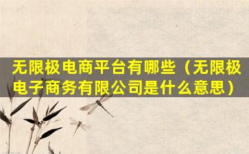 无限极是一家中国的健康产品公司,它通过其官方网站和一些第三方电商平台销售产品。以下是一些可能销售无限极产品的电商平台: