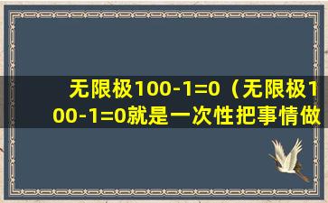 无限极是一家中国的直销公司,主要销售健康食品、个人护理品等产品。您提到的“无限极100-1=0就是一次性把事情做好否则”可能是该公司的一种管理理念或者口号,强调的是在工作中追求完美,不允许有任何差错。这种理念鼓励员工在工作中要尽善尽美,因为即使99%的工作都做得很好,只要有1%的失误,也可能导致整个工作的失败。