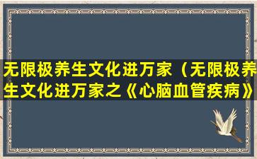 “无限极养生文化进万家”可能是指无限极公司推广其养生理念和产品的一种活动或口号。无限极是一家中国的直销公司,主要销售健康食品、个人护理品和家居用品等。该公司强调传统中医养生理念,并结合现代科技,推广健康生活方式。