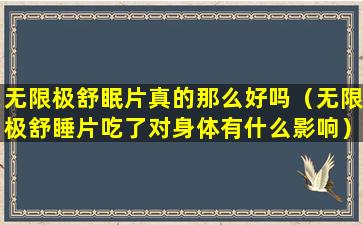 请注意,以上信息仅供参考,具体产品的使用效果和安全性应以官方说明和医疗专业人士的建议为准。如果您对无限极舒睡片有疑问或担忧,建议咨询医生或专业医疗人员。
