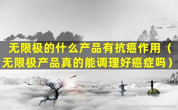 关于无限极产品是否具有抗癌作用,需要明确的是,任何声称具有抗癌作用的产品都应该经过科学研究和临床试验的验证。截至目前,没有公开的科学证据表明无限极的任何产品具有抗癌作用。
