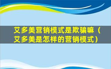 关于“艾多美营销模式是否是欺骗”的问题,我无法提供具体的判断,因为这需要基于实际的证据和法律定义。在中国,任何营销模式都应当遵守中国的法律法规,包括但不限于《中华人民共和国反不正当竞争法》、《中华人民共和国消费者权益保护法》等。