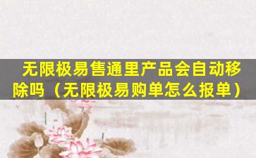 关于“无限极易售通里产品会自动移除”的问题,这取决于该平台的具体规则和政策。通常,电商平台会有一定的库存管理机制,如果产品长时间未售出或者卖家设定了自动下架的条件,产品可能会被自动移除。建议您直接咨询“无限极易售通”平台的客服,以获取最准确的信息。同时,请确保您的行为符合中华人民共和国的政策和法律法规,以及社会主义核心价值观。