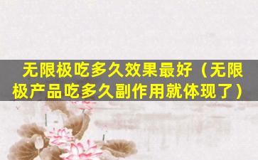 无限极是中国的一个保健品品牌,其产品包括营养补充品、个人护理品和家居用品等。关于“无限极吃多久效果最好”的问题,需要明确以下几点:
