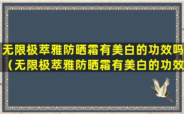 无限极萃雅防晒霜是无限极公司生产的一款防晒产品。根据产品说明,它通常具有防晒功能,能够帮助阻挡紫外线对皮肤的伤害。至于美白功效,不同的防晒霜产品可能有不同的宣称,但一般来说,防晒霜的主要功能是防晒,而不是美白。