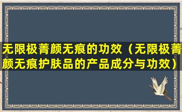 由于我无法访问最新的数据和产品信息,我无法提供关于“无限极菁颜无痕”具体功效的详细描述。通常,这类产品的功效会包括: