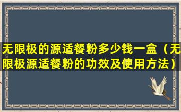 无限极源适餐粉是无限极公司生产的一款营养补充产品,它通常被宣传为能够提供全面的营养支持,帮助维持身体健康。以下是关于无限极源适餐粉的一些信息: