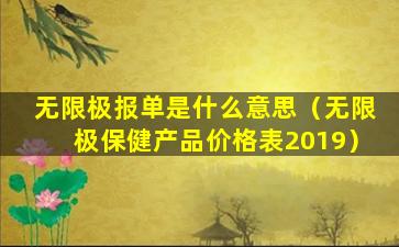无限极是中国一家知名的直销公司,主要销售健康食品、个人护理品等产品。在直销行业中,“报单”通常指的是消费者或直销员向公司提交购买产品的订单。这个过程可能涉及到填写订单表格、选择产品、确认价格和支付方式等步骤。