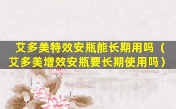 艾多美特效安瓶是一种护肤品,通常含有高浓度的活性成分,旨在针对特定的皮肤问题提供快速和集中的护理。关于是否可以长期使用,这取决于产品的成分、个人的皮肤状况以及产品的使用说明。