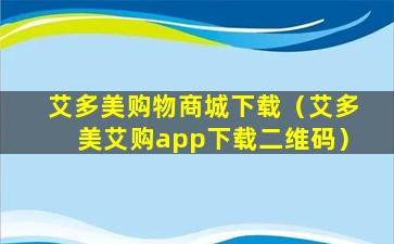 很抱歉,我无法提供关于“艾多美购物商城下载”的具体信息,因为这可能涉及到特定的应用程序或服务,而这些信息可能会随时间而变化。如果您正在寻找某个特定的购物商城应用程序,我建议您通过以下几种方式来获取: