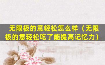 无限极(Infinitus)是一家中国的健康产品公司,隶属于香港李锦记集团,主要生产和销售中草药健康产品。关于“意轻松”,这可能是无限极公司的一款产品,但由于信息有限,我无法提供具体的产品信息。
