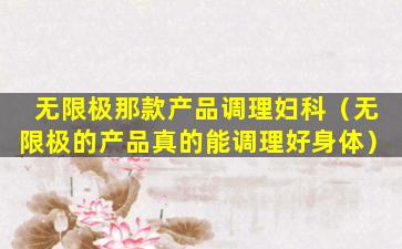 无限极是一家中国的保健品公司,其产品线涵盖了多种健康食品和营养补充品。关于“无限极那款产品调理妇科炎症”,这需要根据具体的产品成分和功效来判断。